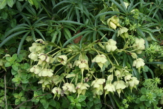 Grande vivace fétide, tiges passant l'hiver. Feuilles palmées divisées une fois, toutes sur les tiges, les supérieures entières.