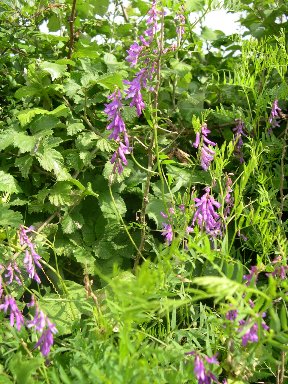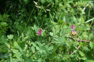 Vivace grimpante petite à grande. Petites fleurs pourpre bleuâtre, gousses noires.