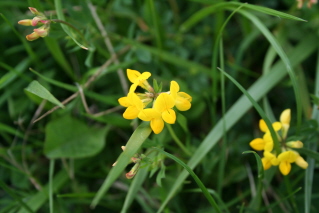 Vivace plus ou moins couché. Feuilles à 5 folioles, paraissant trifoliolées, la paire inférieure étant renversée. Fleurs jaunes souvent teintées d'orange